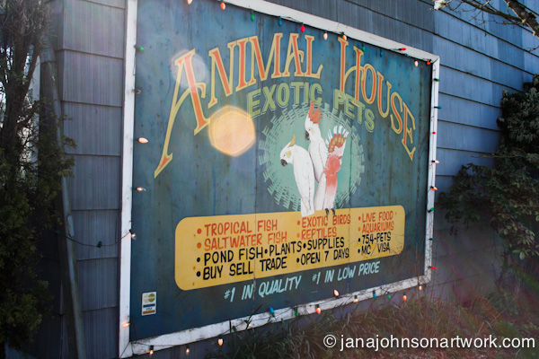 Speaking of Animal House, their sign was one of the first my husband designed and painted – almost 30 years ago! I helped out and painted the parrots. I remember we had a blanket in the grassy yard nearby so our baby girl could play while we worked.