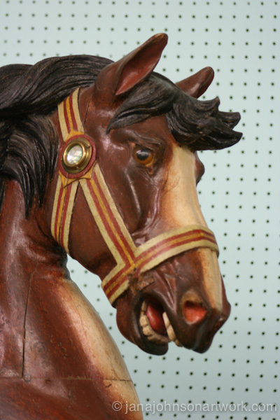 On May 20th, the Vista and Vineyards plein air group met at the Albany Carouselbuilding where I eventually settled to paint one of the vintage horses they had on display in their gift shop and museum. Before that I wandered around admiring some of the other animals.