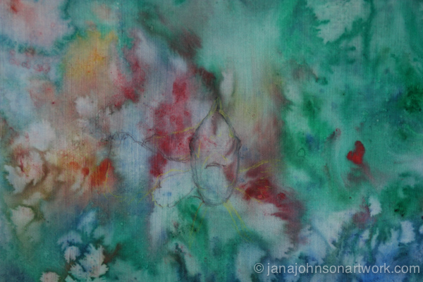 Back in April, I finished up a this painting on canvas to include in my Featured Artist show at Art In The Valley Gallery. It is hanging there still, with several other pieces from that show for another month. It’s painted on smoothly primed canvas with a watercolor background.