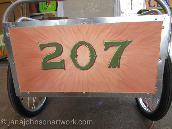 There are paints available at the sign barn to use, but this year I brought my own brushes and paints. Since there can be numerous different sign painters that work in the space, it’s much easier to keep track of things if I have my own kit. I remember needing to hunt down colors that wandered off last year, or finding a cup of mixed paint left open and dried out. Since I was just painting small images compared to giant signs, it was better for my sanity to have my own materials!