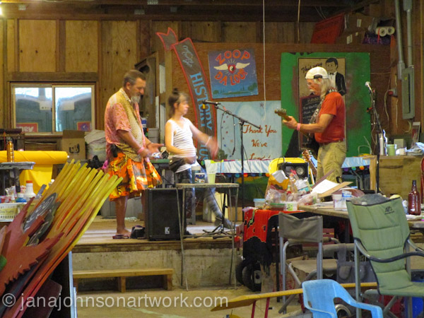 That afternoon we were entertained by live music, including Artis the Spoonman. He painted next to me several days in a row, and we had a lot of good conversations. He enjoys painting, and has worked on and off at the sign barn for years.