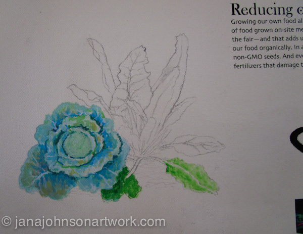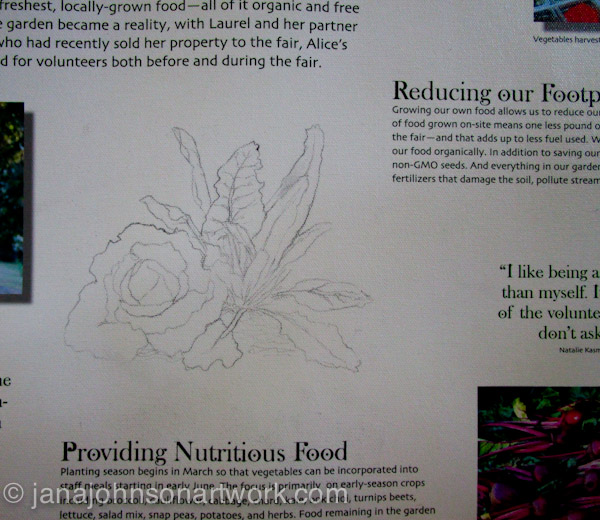 Here’s a close up detail of the garden banner, title finished, veggies painted and ready to be installed in the fair, which was opening the next day.
